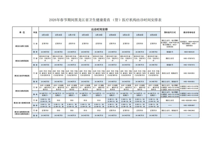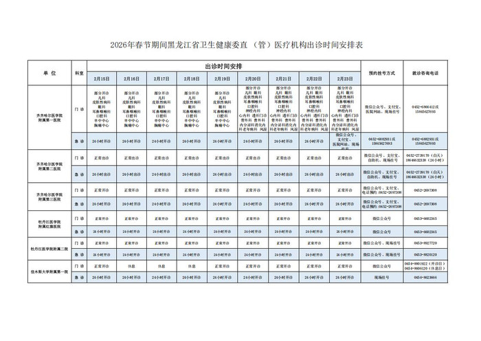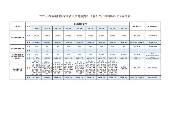 你的位置:米兰体育官方网站 > 米兰滚球 > milan 2026年春节工夫黑龙江省卫生健康委直(管)医疗机构出诊时刻安排表